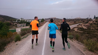 En este caso la salida ha sido por la Vía Verde de Murcia, una vía perfecta para salidas, ya que solo es transitable para bicis y personas. Un rodaje mañanero a intensidad baja-media donde el inicio lo marcamos a las 9.00h en la Universidad de Murcia, con previsión de llegada a Molina de Segura y vuelta a la Uni. La bajada fue tranquila a un ritmo que nos permitió hablar un poco de todo y entre otras cosas, ponernos al día de nuestros objetivos para la siguiente campaña. ¡Ojo! que la Media Maratón de Santa Pola se postula como la carrera donde mis tres amigos quieren debutar en esa distancia. ¡¡Cuidado que #fuerzaypiernas ataca de nuevo !!